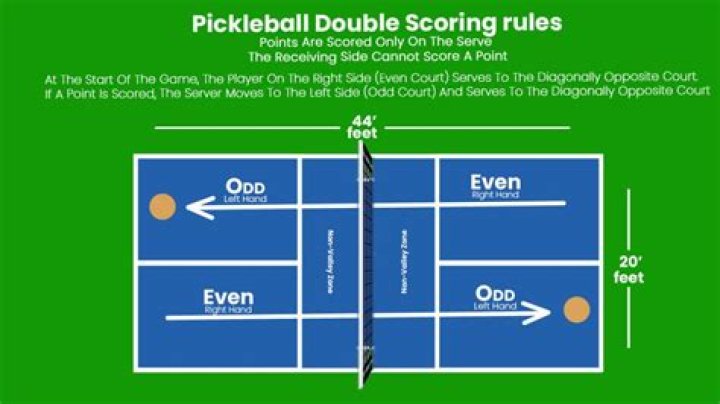 Points are scored only on the serve; the receiving side cannot score a point.At the start of the game, the player on the right side (even court) serves to the diagonally opposite court.If a point is scored, the server moves to the left side (odd court) and serves to the diagonally opposite court.
