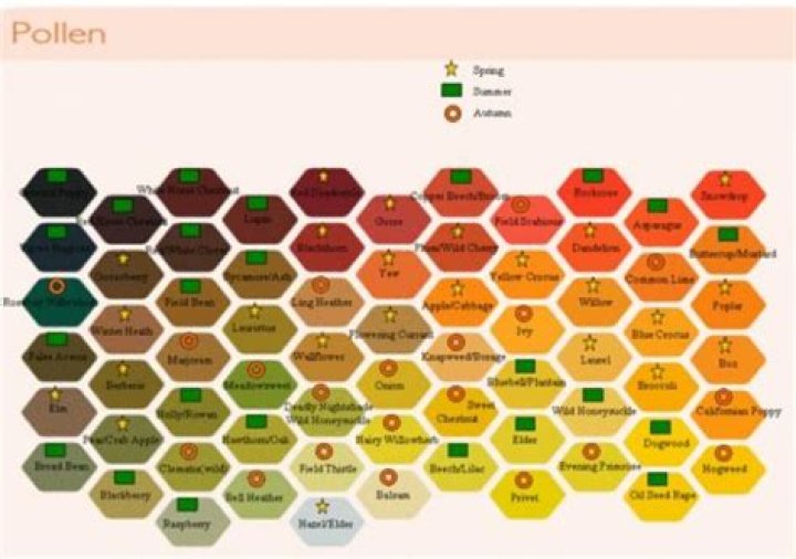 For example, pollen from pear trees is reddish yellow, while that from borage is blueish grey and pollen from buckwheat is light green.