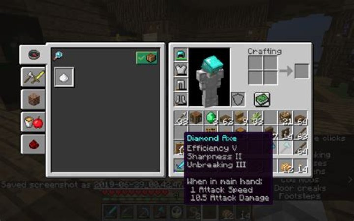 Sharpness can now be applied to axes. Sharpness is mutually exclusive with new enchantment Cleaving.