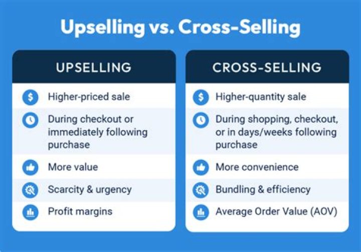 For example, a housekeeping service might upsell a customer buying a weekly cleaning package by offering a package with more rooms, and cross-sell by also offering a carpet deep cleaning service. Both cross-selling and upselling are based on the premise that sales are driven by recommendations.