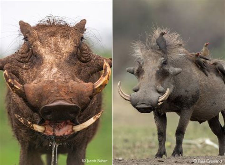 Warthogs are named for the four wart-like protrusions on their face. These are really skin-covered tusks.