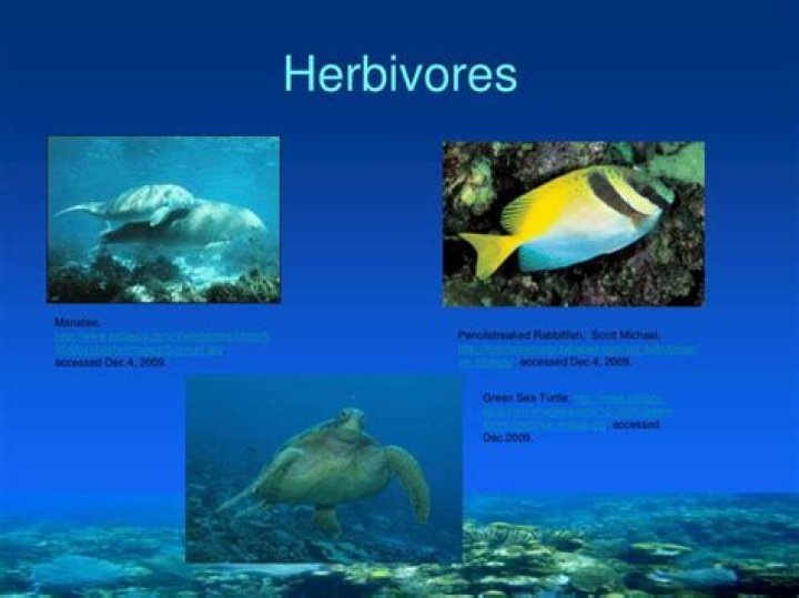 Marine herbivores are found within four groups of species in the animal kingdom — invertebrates, fish, reptiles and mammals — and include zooplankton, mollusks, the green sea turtle, the marine iguana and some fish species. Manatees and dugongs are the only herbivores among marine mammals.