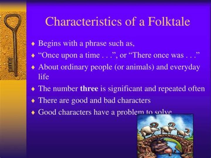 All folktales originally began as stories told by word of mouth.All folktales have a moral or teach a lesson.Many old folktales explain how something came to be. Characters in folktales are usually animals or people.Usually a character in a folktale must face an impossible test.