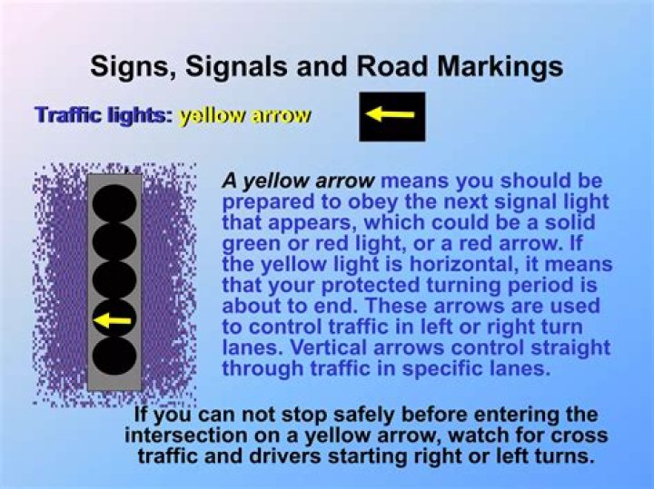 The new traffic signals provide traffic engineers with more options to handle variable traffic volumes. A flashing yellow arrow signal has the same meaning it always has: left turns may proceed with caution after yielding to oncoming traffic.