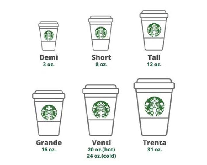 Unsatisfied with existing sizes Short, (8 ounces), Tall (12 ounces), Grande (16 ounces), Venti (20 ounces), and Venti Iced (24 ounces), Starbucks is launching the 31-ounce Trenta.