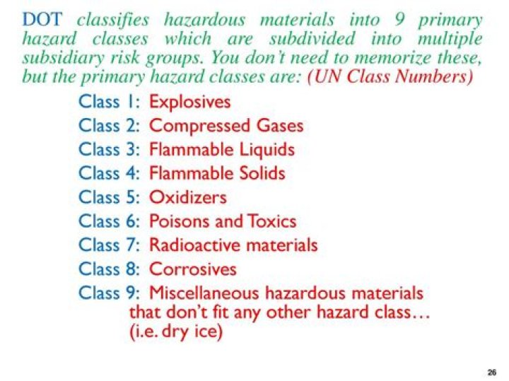 The nine hazard classes are as follows: