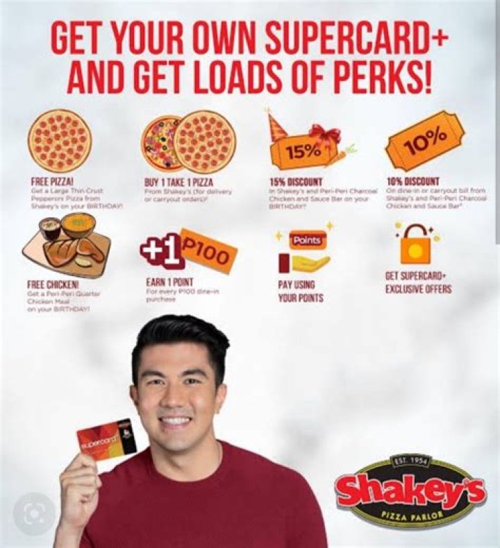 As a SUPERCARD CLASSIC Holder, you will be able to enjoy these benefits from Shakey’s and Peri-Peri Charcoal Chicken and Sauce Bar: