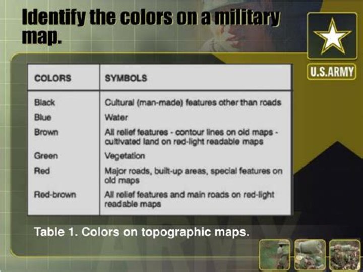 What are the colors used on a military map?