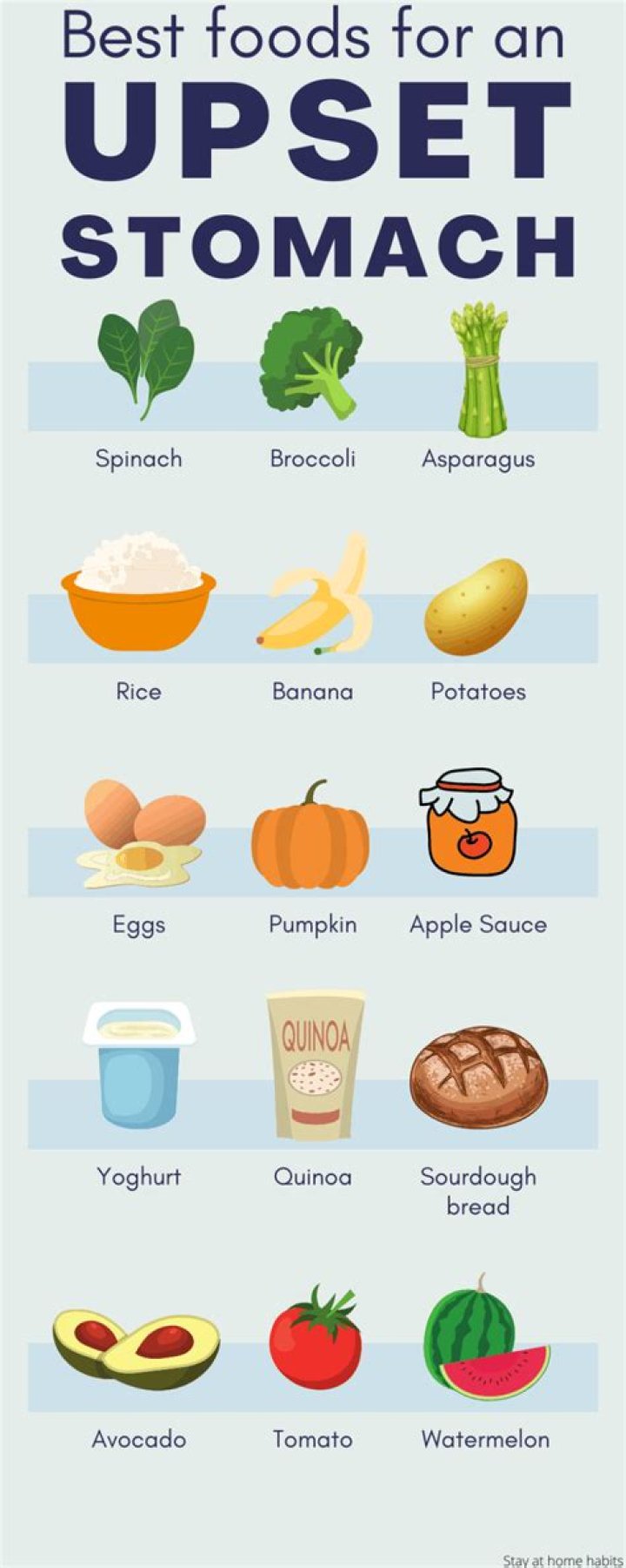 Yogurt. Yogurt has bacteria that is essentially good for your gut. Whole grains. These include brown rice, oats and whole grain or whole wheat bread. Banana. Ginger. Beetroot. Apple. Sweet potato. Avocado.
