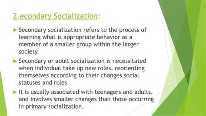 Secondary socialization is usually associated with teenagers and adults and involves smaller changes than those occurring in primary socialization. Such examples of secondary socialization are entering a new profession or relocating to a new environment or society.