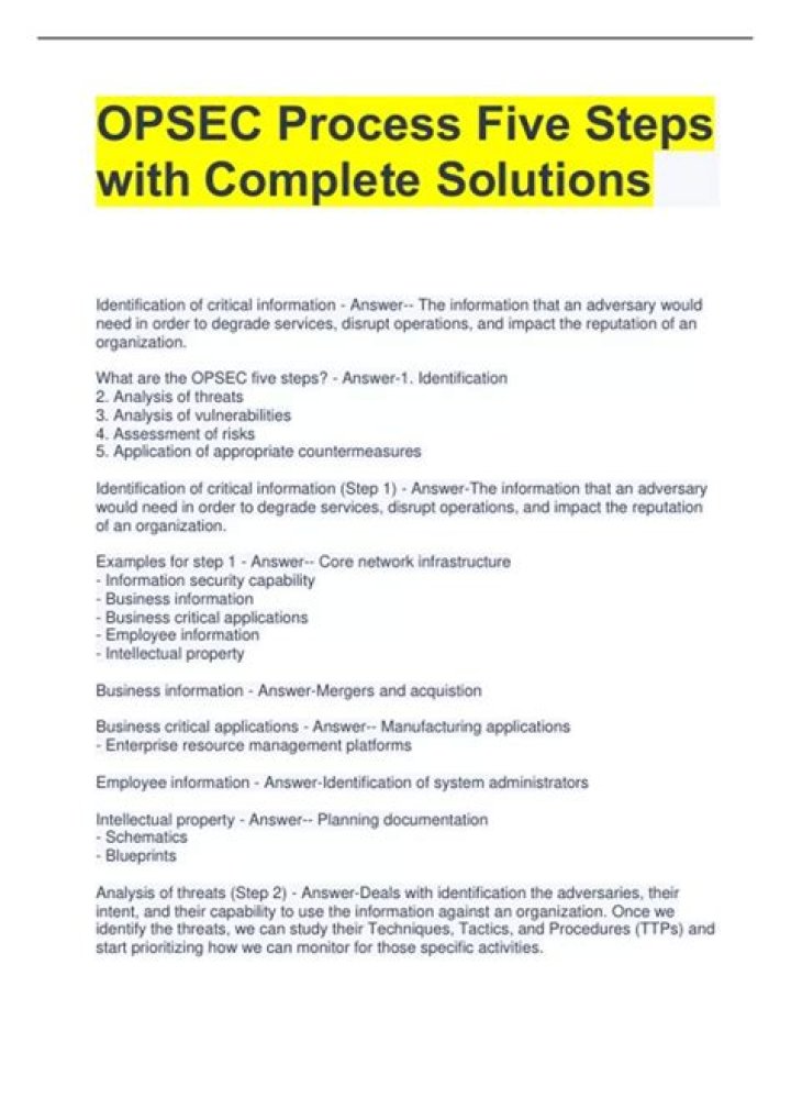 The OPSEC process involves five steps: (1) identification of critical information, (2) analysis of threats, (3) analysis of vulnerabilities, (4) assessment of risk, and (5) application of appropriate countermeasures.