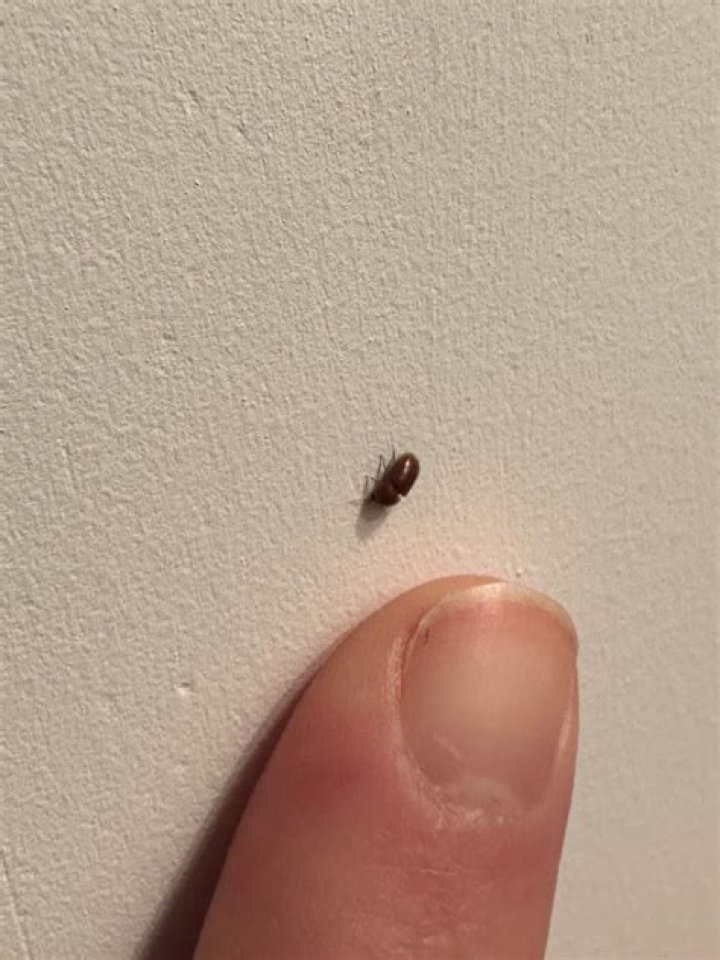 Clover mites are very small, which is why they are often referred to as those tiny red bugs. The adults are reddish to brown in color and the immature mites and eggs are a bright red. Clover mites have eight legs with two at the head that are often thought to be antennae, not that you can see them that well.