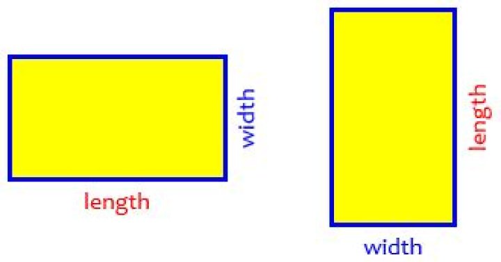 Difference between length and width is that length is the longest side of the object whereas width is the shorter side. For example, in a rectangle with sides 4 cm and 9 cm, the width measures 4 cm whereas the length measures 9 cm.