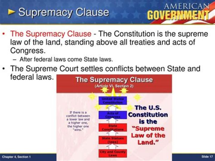 The supremacy clause is a clause of article 6 of the constitution that states that all laws passed by the national government and all treaties are the supreme laws of the land and superior to all laws adopted by any state or any subdivision.