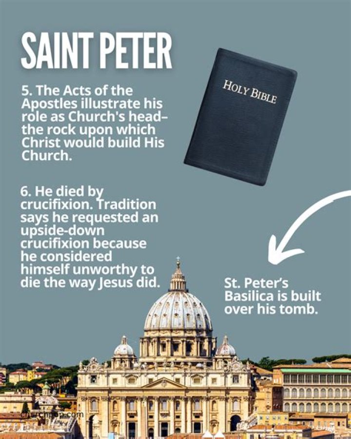 Peter was one of the 12 Apostles of Jesus. Roman Catholic tradition holds that Jesus established St. Peter as the first pope (Matthew 16:18). Jesus also gave him “the keys of the kingdom of heaven” (Matthew 16:19), which is why he is often depicted at the gates of heaven in art and popular culture.