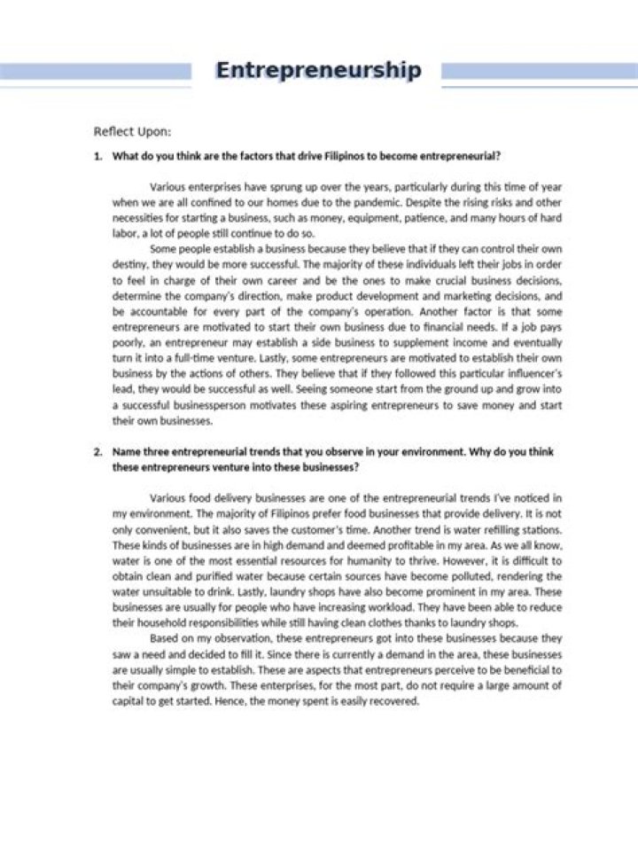 What do you think are the factors that drive Filipinos to become entrepreneurial entrepreneurs?