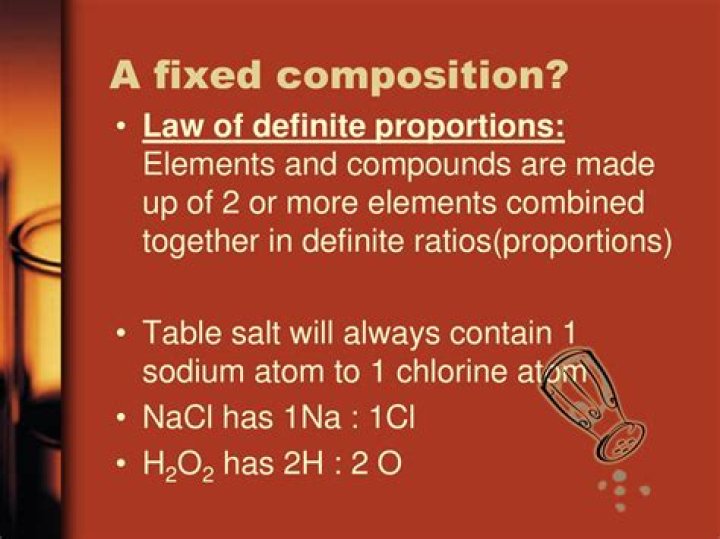 What does “fixed composition” mean with regard to chemical compounds? Whenever the same two elements form more than one compound, the different masses of one element that combine with the same mass of the other element are in the ratio of small whole numbers.