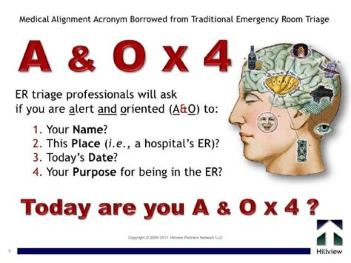 The phrase “alert and oriented” is one you may have heard in a healthcare setting. It refers to a description of one’s level of awareness of reality at that moment. Orientation can be described as being aware of person, place, time, and sometimes situation.