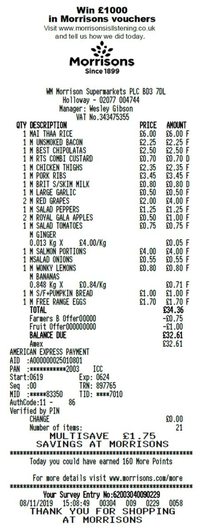 What does C mean on Morrisons receipt?