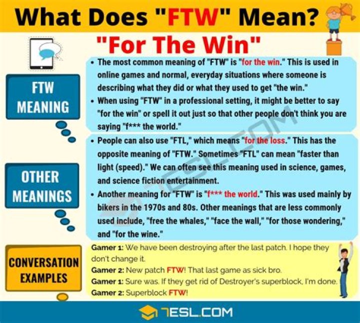 Here are the terms you need to know ASAP! FTW. For The Win was used originally used in cricket but feel free to use the acronym whenever you get your winner on.