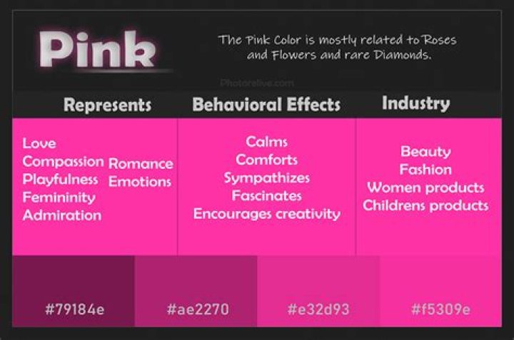 The color pink, for example, is thought to be a calming color associated with love, kindness, and femininity. Many people immediately associate the color with all things feminine and girly. It might also bring to mind romance and holidays such as Valentine’s Day.