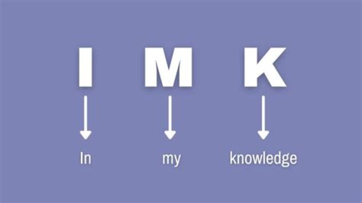 According to Cyber Definitions and 7 ESL, the term IMK stands for “in my knowledge.” This is used in SMS text messages and over social media to indicate that the sender believes the information to be true, but is not completely sure.