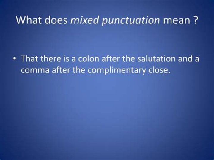 What is Mixed Punctuation? If you prefer a more conventional style, consider using mixed punctuation. This letter formats the bridge between open and closed punctuation. You will add a colon after the salutation and a comma after the closing line.