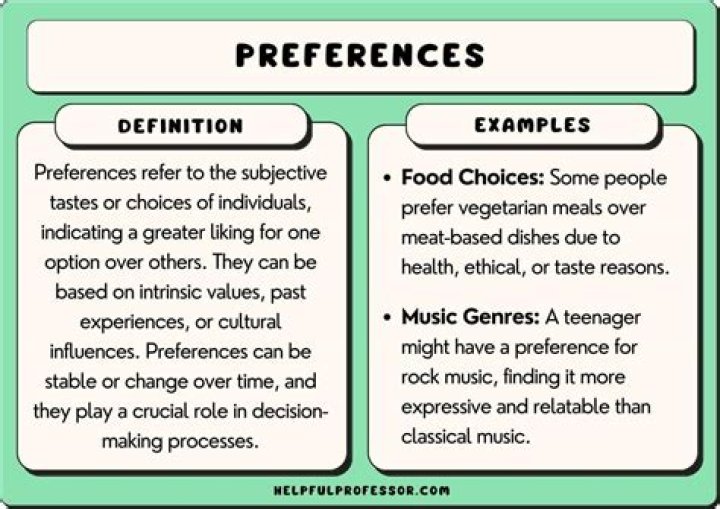 Preferences, or what a person wants to do, stem from their own values or cultural norms, knowledge and available information. Preferences are also influenced by past experiences and the consequences of previous decisions.