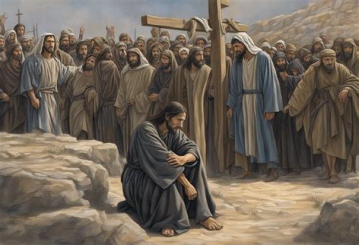 The fifth Station of the Cross, showing Simon of Cyrene helping Jesus carry his cross.
