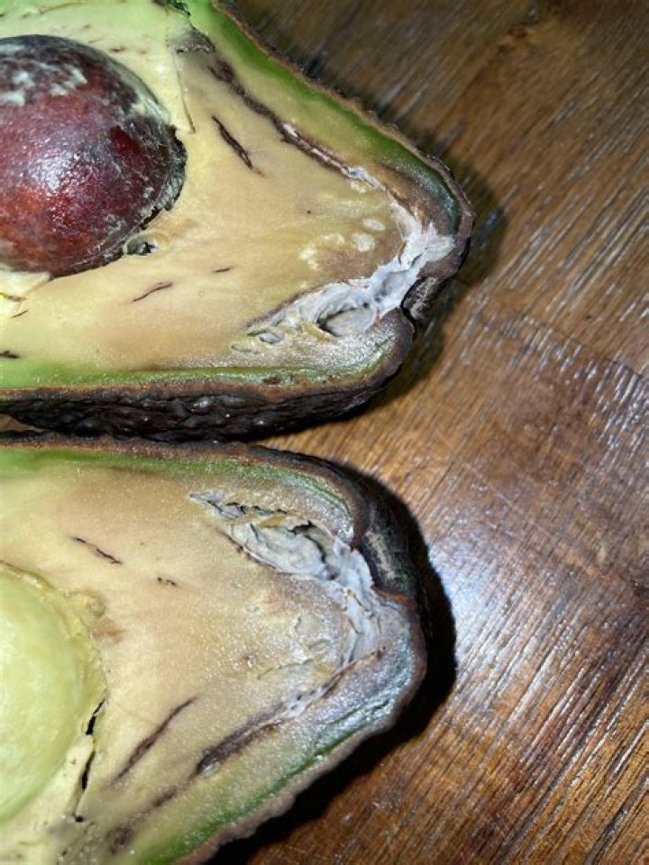 These spots form when the avocado has either been exposed to cold weather for a long time before it began to ripen or bruising caused by excessive handling.
