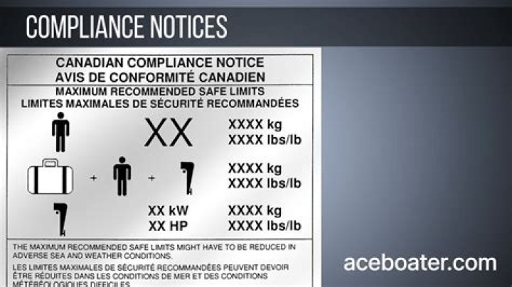 The compliance notice states that the vessel complies with the construction requirements when it was built or imported (whichever date was most recent). The notice also shows the maximum number of people that can safely board the vessel. This is also known as a “capacity label.”