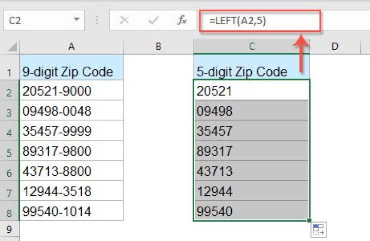 �U.S. ZIP Codes are always five digits long. These 3 and 4 digit numbers actually begin with one or two zeros. For example, when you see “501” for Holtsville, it’s really 00501. As a default, Excel converts this column into a number and removes the leading zeros.