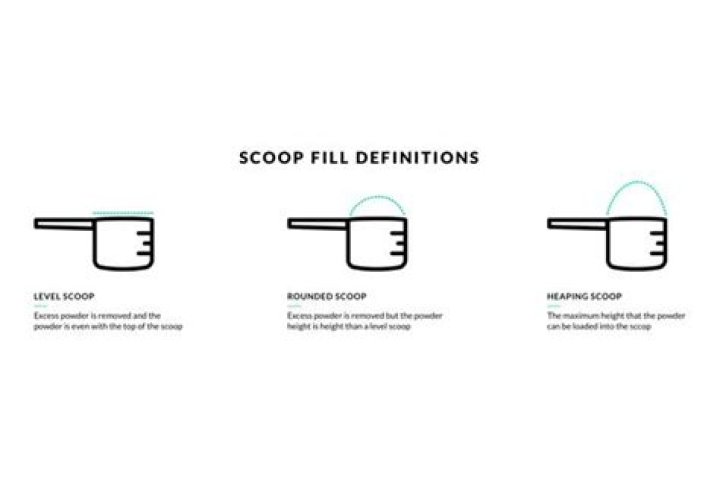 Rounded Scoop = excess powder is removed but the powder height is higher than a level scoop.