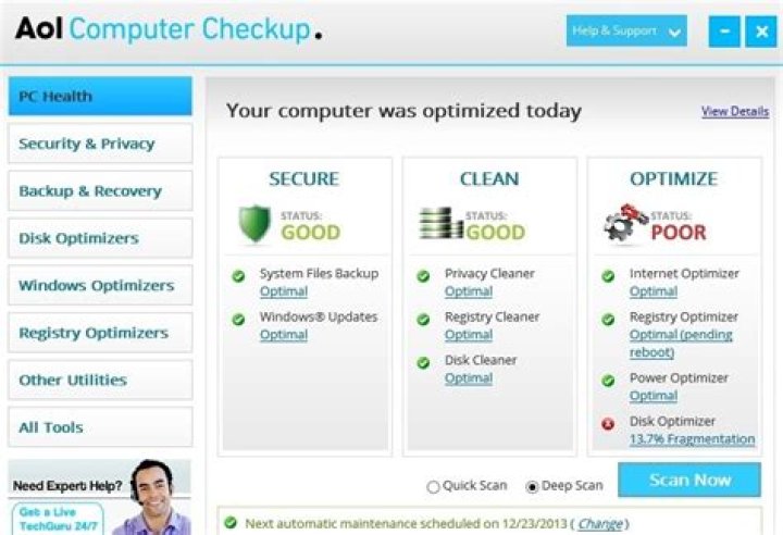 The Windows 8/7XP-compatible AOL Computer Checkup features a simple, easy-to-navigate interface. AOL may have a reputation for spamming or attempting to upsell its userbase, but AOL Computer Checkup is a very clean install. The layout is easy to comprehend and navigate.