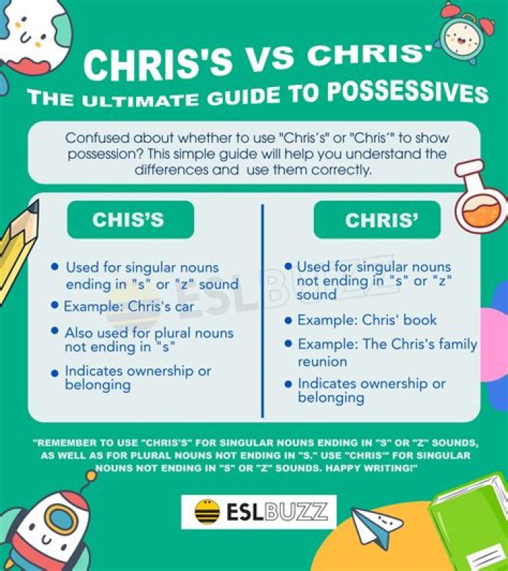 In school, it is common to be taught to write “Chris’” when talking about something that belongs to Chris. When we are talking, we say Chris’s when referring to something that belongs to Chris. While both are technically correct, the main difference is in the required style guide.