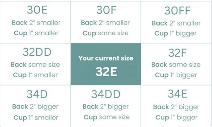 A 32B not only has a smaller band than a 34B, but also smaller cups. Cup size is relative to band size—a 32B has the same cup volume as a 34A, a 30C, and a 28D—these are called sister sizes.