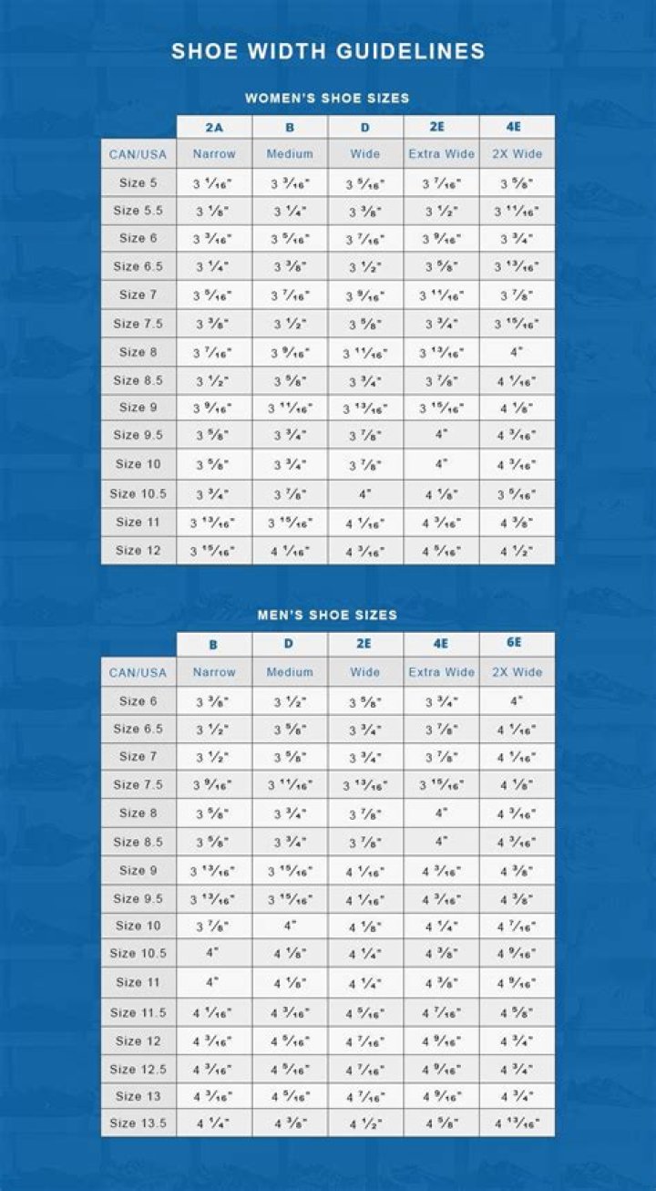 2E and 4E are two of the most common ‘E’ letter sizes, and similar to ‘A’ letter widths, adding more Es will increase the overall width. For men, a 2E is considered a Wide shoe, while a 4E or larger will be considered Extra Wide. For women, a 2E or larger is considered an Extra Wide shoe.