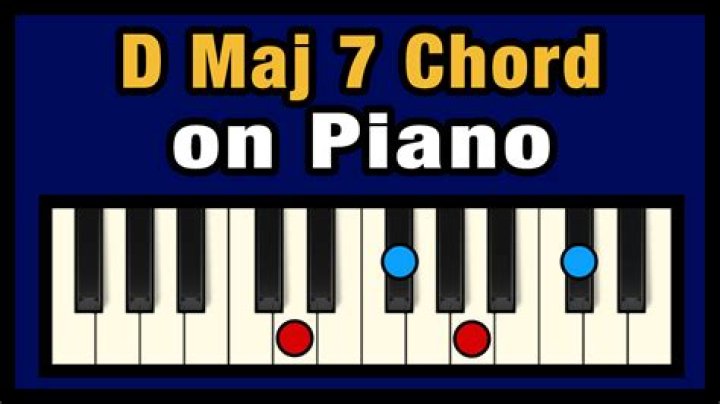 Explanation: The D major seventh is a four-note chord. You can see the four notes of the D major seventh chord marked in red color. The chord is often abbreviated as Dmaj7.