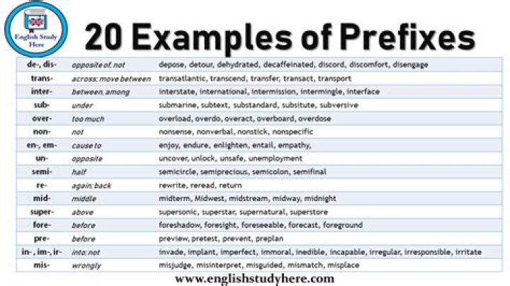 Prefixes are letters which we add to the beginning of a word to make a new word with a different meaning. Prefixes can, for example, create a new word opposite in meaning to the word the prefix is attached to. They can also make a word negative or express relations of time, place or manner.