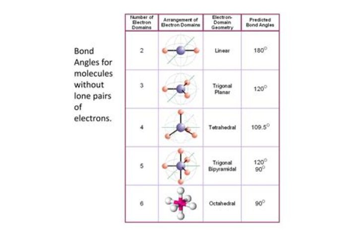 Trigonal planar: triangular and in one plane, with bond angles of 120°. Tetrahedral: four bonds on one central atom with bond angles of 109.5°.