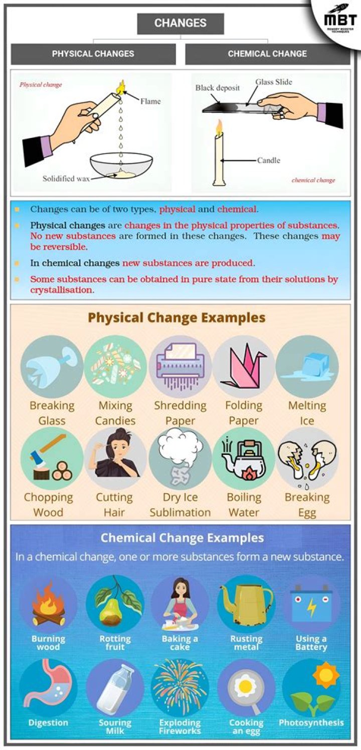 Burning, cooking, rusting and rotting are examples of chemical changes.