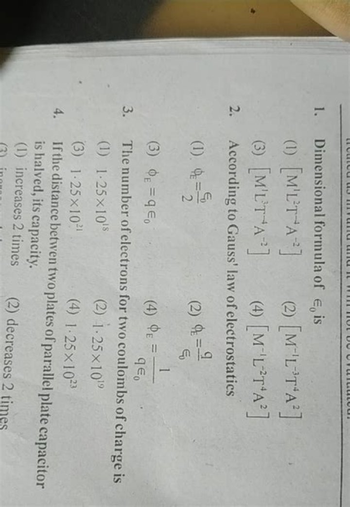 The dimensional formula for permittivity of free space (ϵ0) in the equation F=4πϵ01r2q1q2 where, symbols have their usual meaning is.