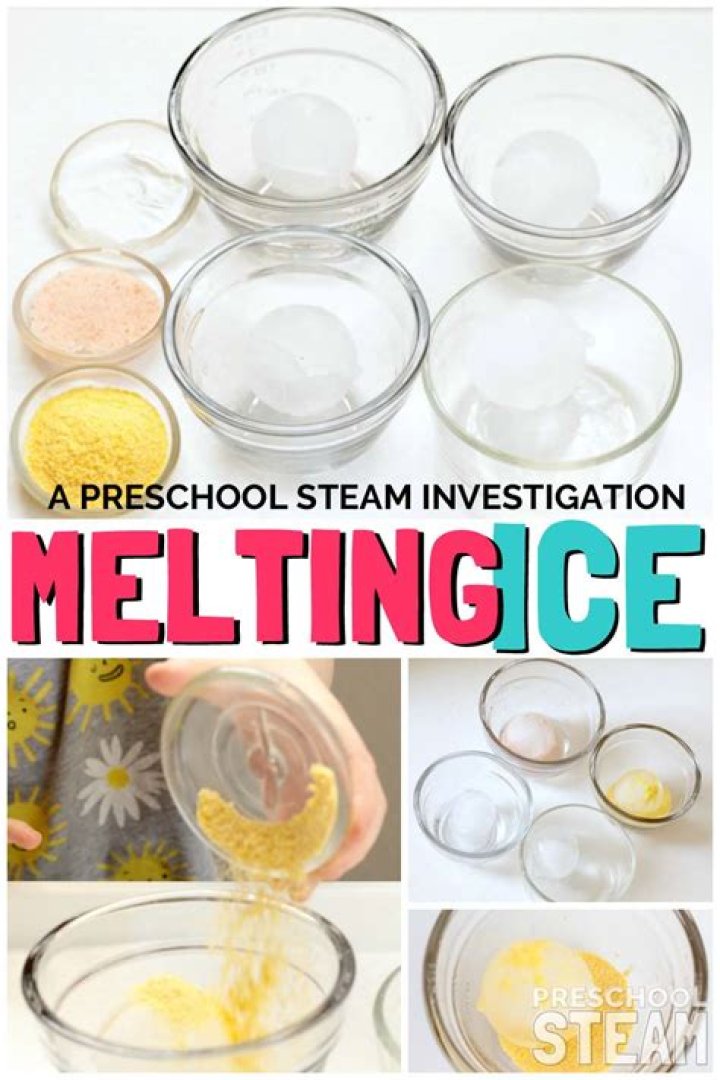 – Use bleach to melt ice. The only effect bleach would have would be the same as you would get from any salt; that is, freezing point depression. The salt solution melts at a lower temperature than pure water, and so if the ambient temperature is not too low, the ice melts.