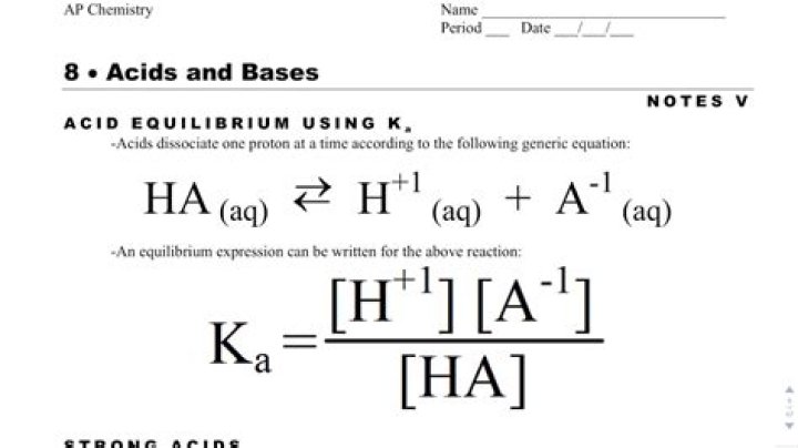 There is a relationship between the concentration of products and reactants and the dissociation constant (Ka or Kb). For acids, this relationship is shown by the expression: Ka = [H3O+][A-] / [HA].