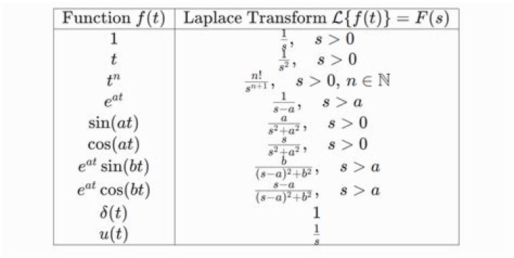 The Laplace transforms of particular forms of such signals are: A unit step input which starts at a time t=0 and rises to the constant value 1 has a Laplace transform of 1/s. A unit impulse input which starts at a time t=0 and rises to the value 1 has a Laplace transform of 1.