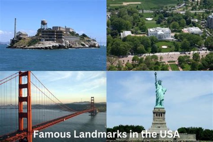 Statue of Liberty, New York City. National Mall, Washington, D.C. Hollywood Sign, Los Angeles, California. Route 66, Oklahoma. Golden Gate Bridge, San Francisco, California. Gateway Arch, St. Space Needle, Seattle, Washington. Cloud Gate, Chicago, Illinois.