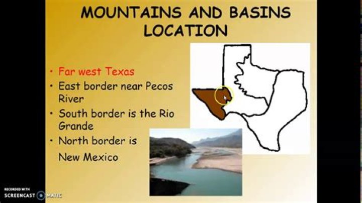 The Mountains and Basins region is the most western region of Texas. It is the highest and driest part of Texas.