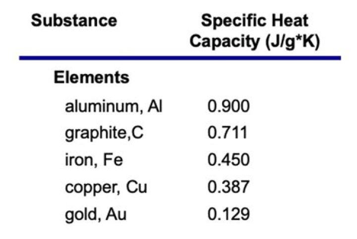 What is the specific heat capacity if it takes 1000 J of energy to heat 25 g of this substance by 100°C? Give your answer in J/kg°C. c = Q m Δ T = 1000 J 0.025 k g × 100 ∘ C = 400 J / ( k g ∘ C ) .