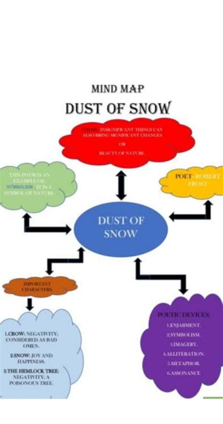 The dust of snow is the symbol of natural joy and energy. The dust of snow that the crow shakes off a hemlock tree means passing through the sad and depressing moments, the poet is entering the time full of joy and optimism. 1. Stanza-1: Some say the world will end in fire Some say in ice.