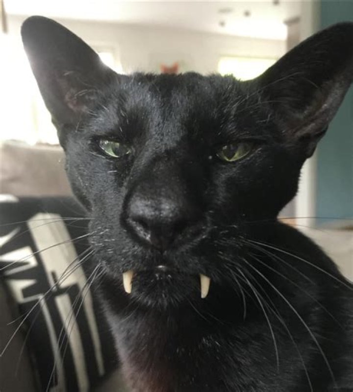 Why do black cats have long teeth?